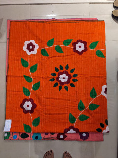 ভালো কোয়ালিটির কাপড়ের উপর হ্যান্ডস্টিচ, এপ্লিকের কাজ করা হয়েছে।